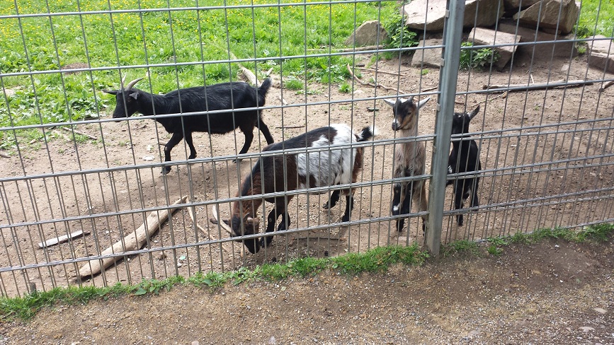 Das Restaurant ist neben einem Wildgehege. Kinder spielen mit und füttern gerne die kleinen Tiere.